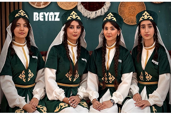 لباس مخصوص رقص آذری برای خانم ها: رقص آذری دخترانه با لباسهای مخصوص خود اجرا میشود. که گروه رقص آذربایجانی بیاض طراح و خیاط دارد و به شما نیز برای اجرا از این لباس ها در نظر گرفته می شود تا اجرای زیبایتان با لباس مخصوص رقص آذربایجانی بهتر و زیبا دیده شود.